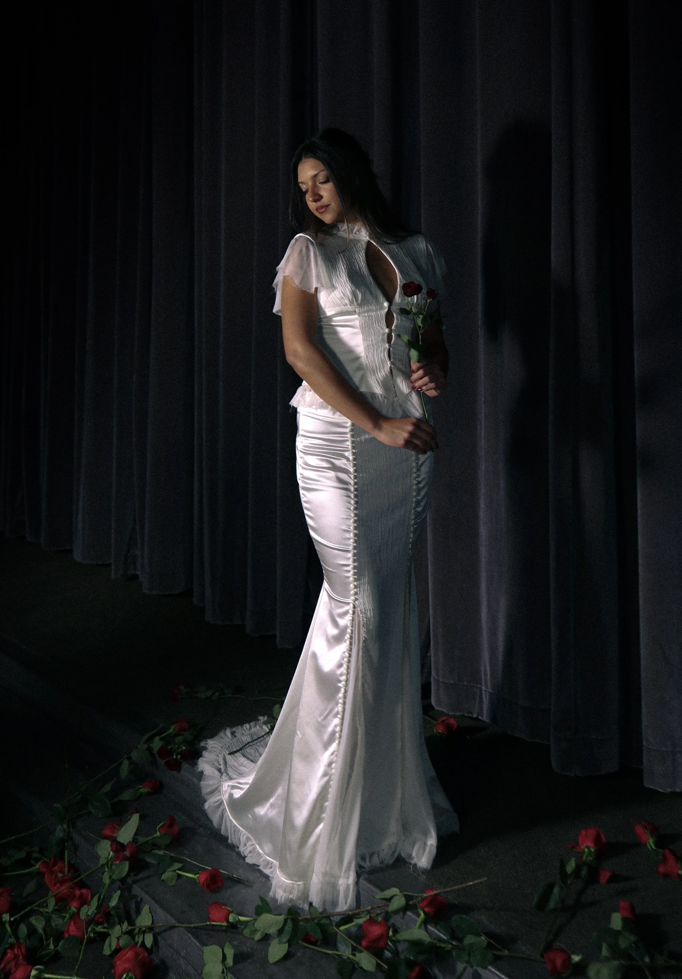 Please allow three to four months from time of purchase to shipment of your garment(s). Rush orders are available upon request, but please email coco@vraixlune.com PRIOR to placing an order to confirm availability and schedule. Rush fee will apply.